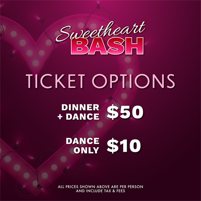 Dinner + Dance Admission : $50 per person (includes all tax/fees) Dance-Only Admission : $10 per person (includes all tax/fees)