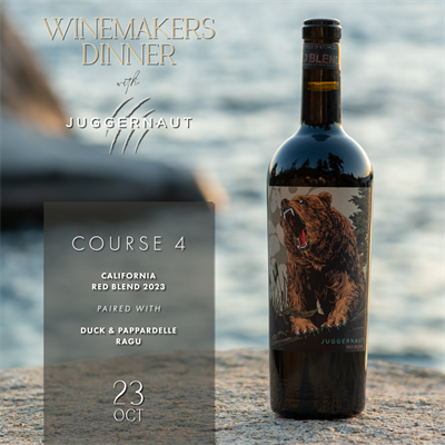 Join us for a special winemakers' dinner and wine pairing event with Juggernaut Winery.